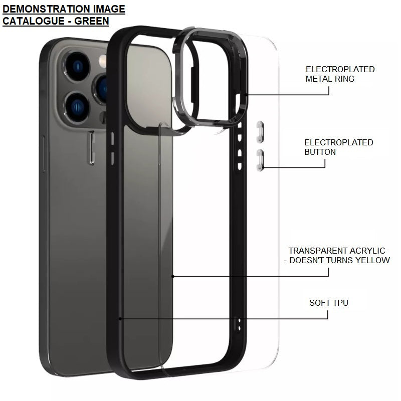 - DESIGN AND MATERIAL SPECIFICATION ➤ Premium arcylic back, poly carbonate soft bumper sides, electroplated metal buttons.