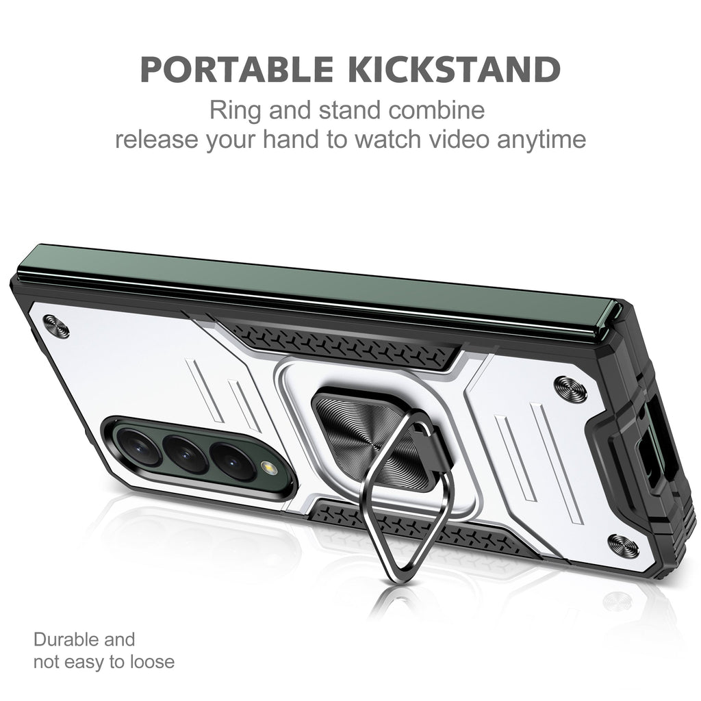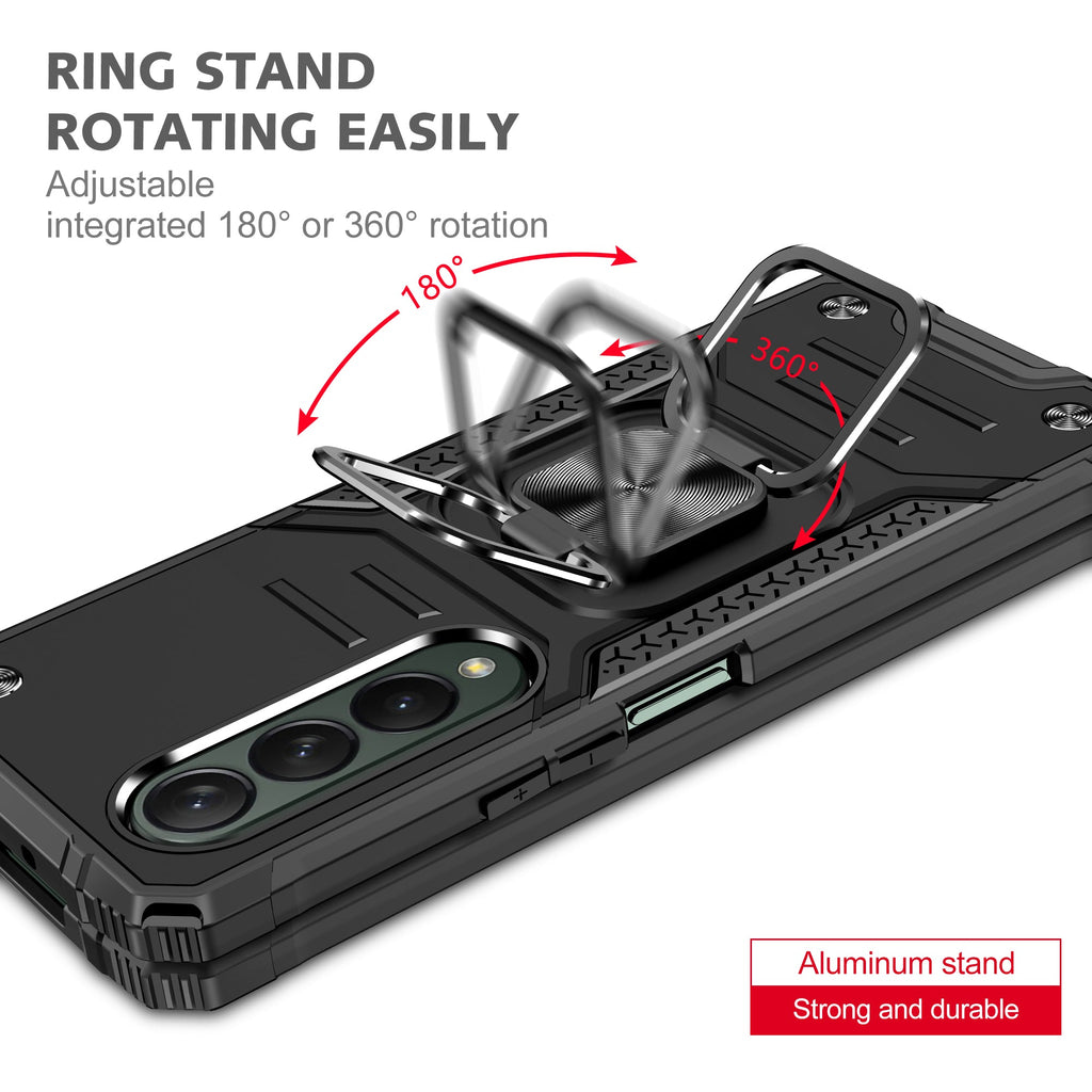 - Portable Phone Holder - Our Samsung Galaxy Z Fold4 5G case has a metal ring-shaped phone holder, which is durable and not easy to loose. It can also be rotated 360 degrees and flipped 180 degrees, providing you with a comfortable video viewing angle. In addition, when you need to take a selfie or When holding something in your hand, you only need to pass a finger through the holder to prevent the phone from falling.