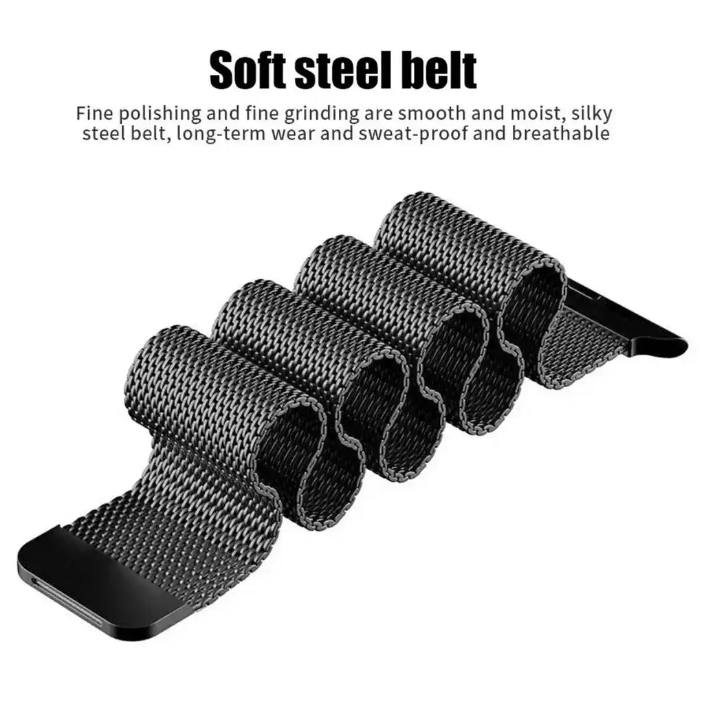 - COMFORTABLE FIT AND EASY ON/OFF ➤ Stainless steel mesh design provides cool touch feeling and won't pinch skin or hair on wrist; The strap easily snaps into the base of the watch so you can change colors to suit your mood or outfit.