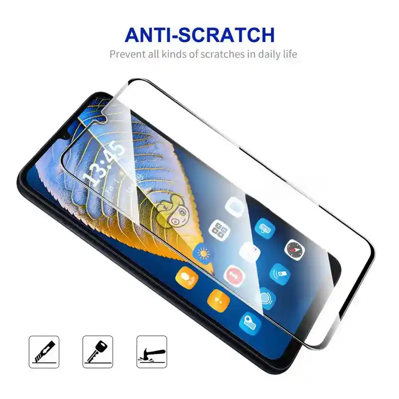 - BUBBLE FREE INSTALLATION KIT - The cleaning cloth, dust removal sticker, and wet-wipe ensure a bubble and dust-free application for the Samsung Galaxy M05 screen protector glass. Follow the installation guide provided along with the product.