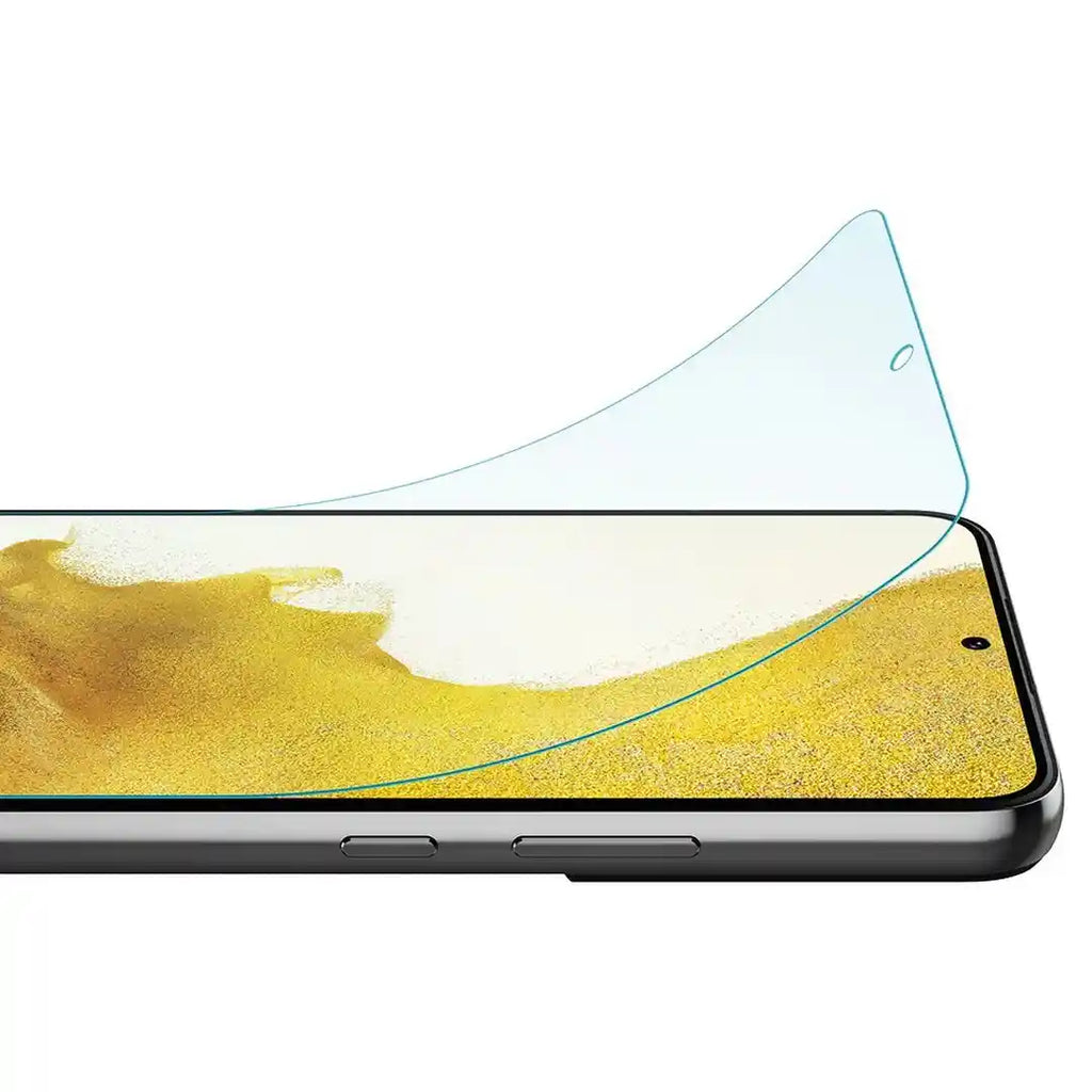 - Flexible Materials and Maximum Protection - The Samsung Galaxy S22 5G screen guard is not tempered glass, it is made of polyethylene terephthalate (PET) that can cover the curved edges of the Samsung Galaxy S22 5G, providing maximum protection against scratches. With nano-elastic to prevent your Samsung Galaxy S22 5G screen from breakage caused by minor drops.